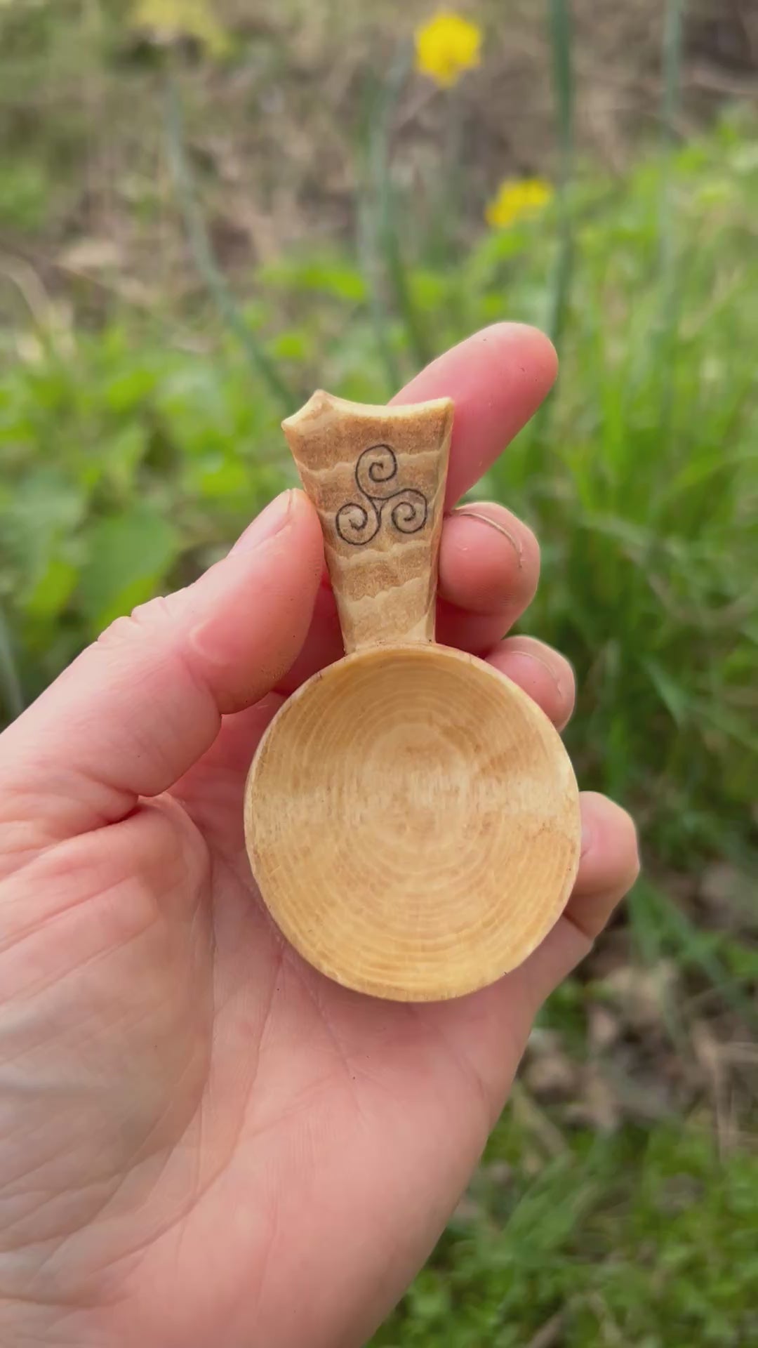A small caddy spoon from my Celtic collection, hand carved from Beech wood from Gloucestershire.