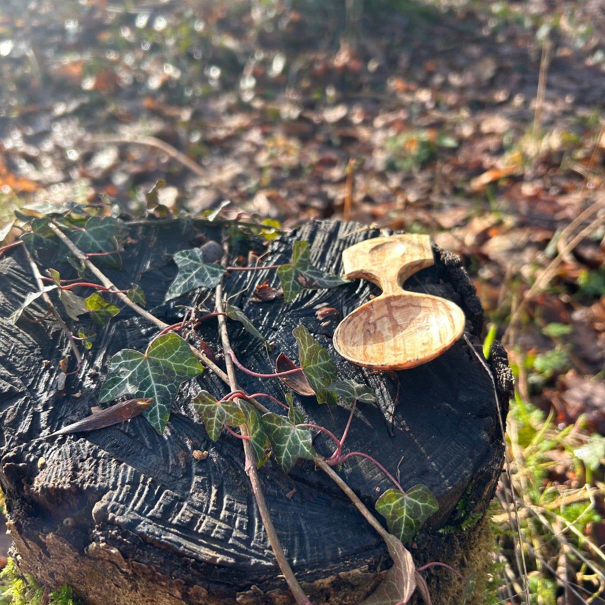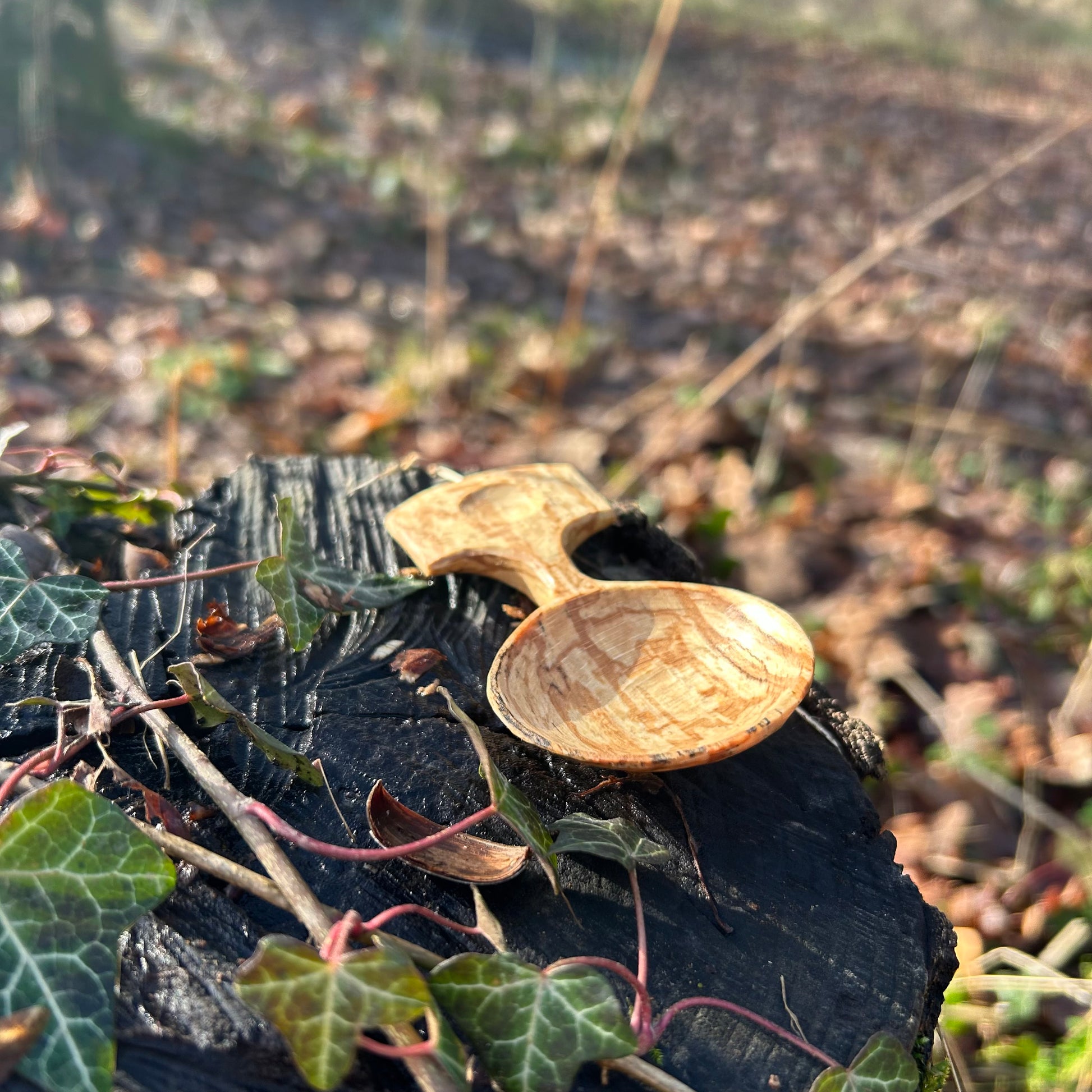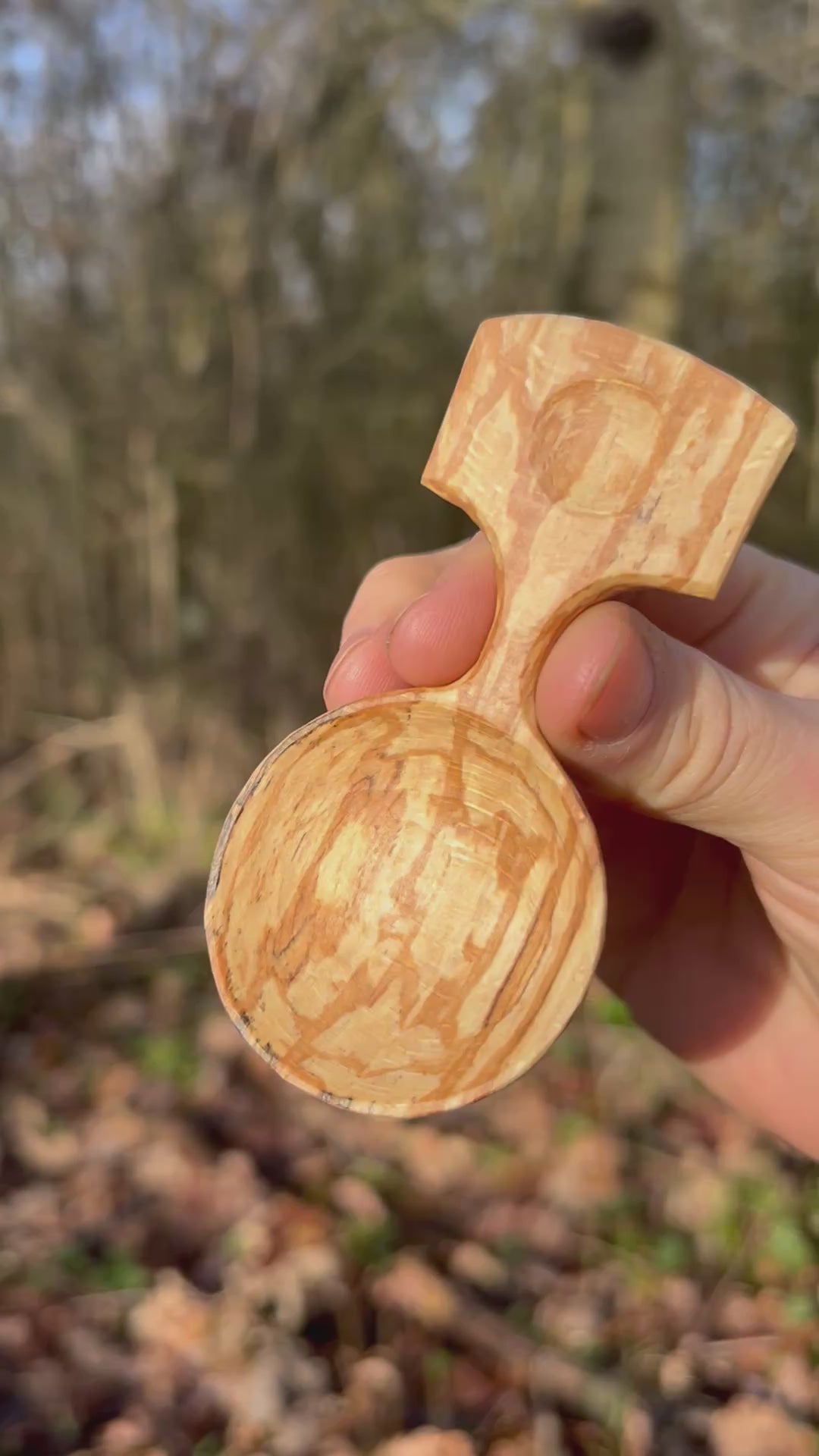 A shallower take on a coffee scoop, this caddy spoon is made from this stunningly patterned spalted Beech wood, kindly gifted from a friend in Oxfordshire.