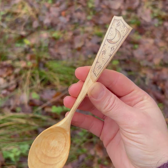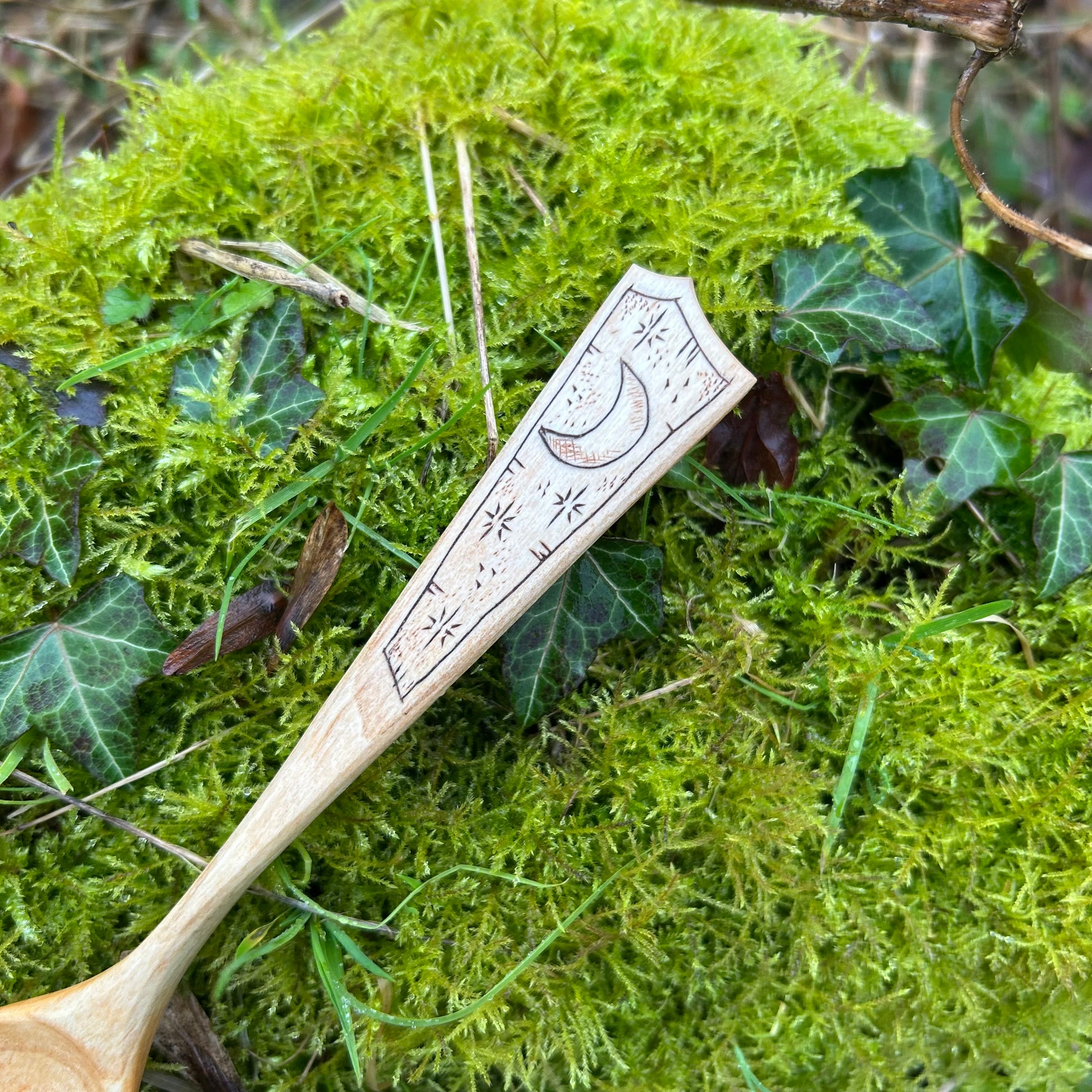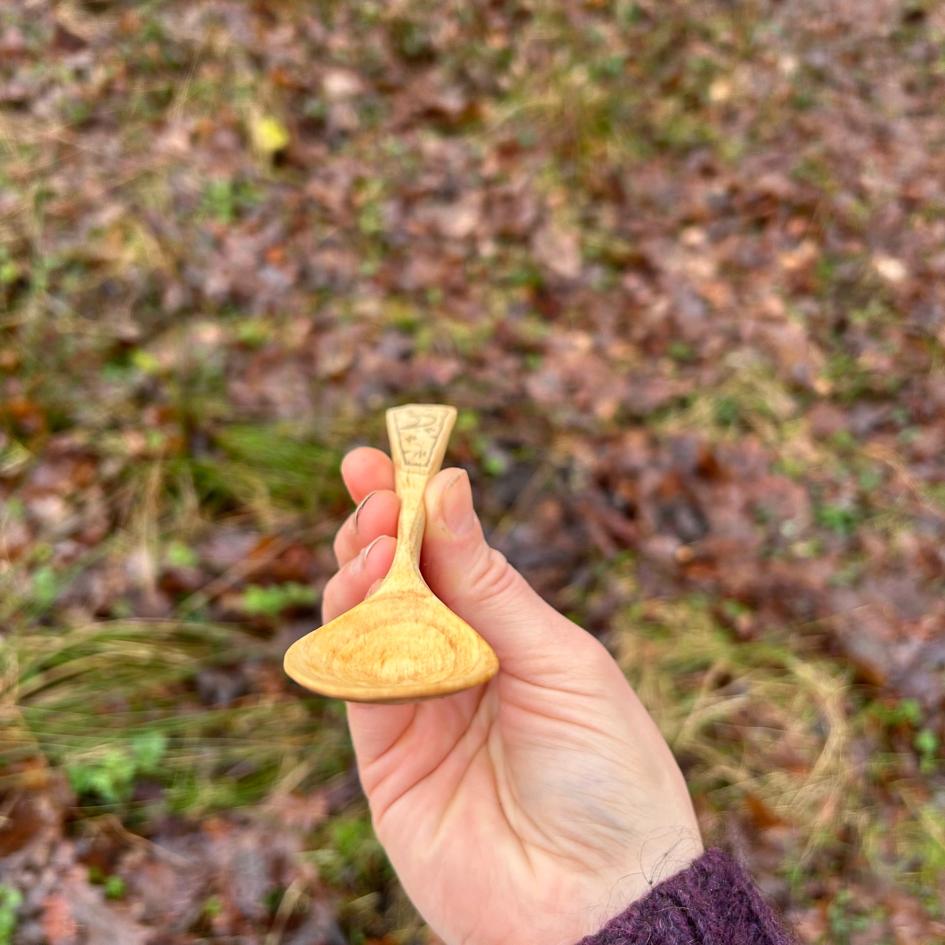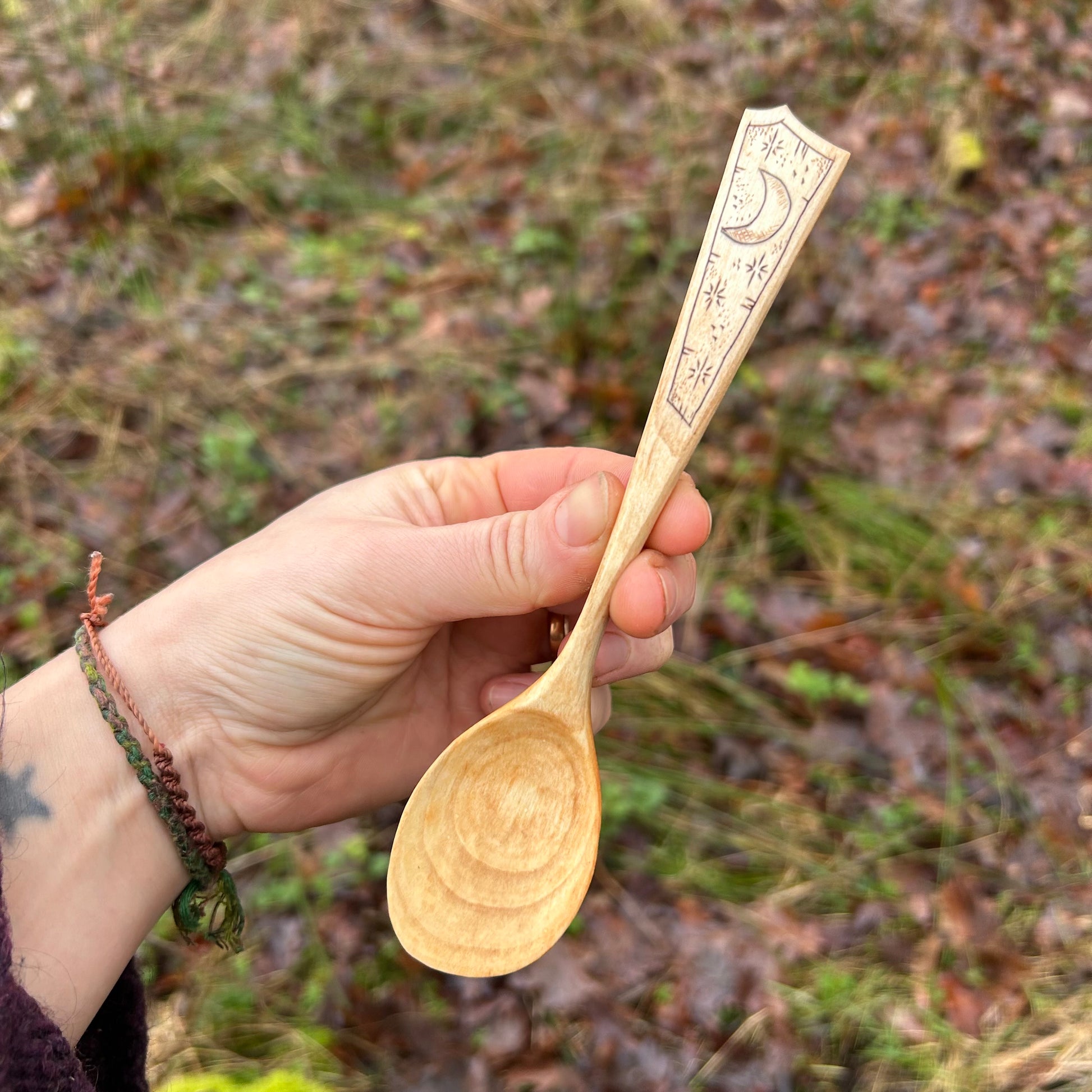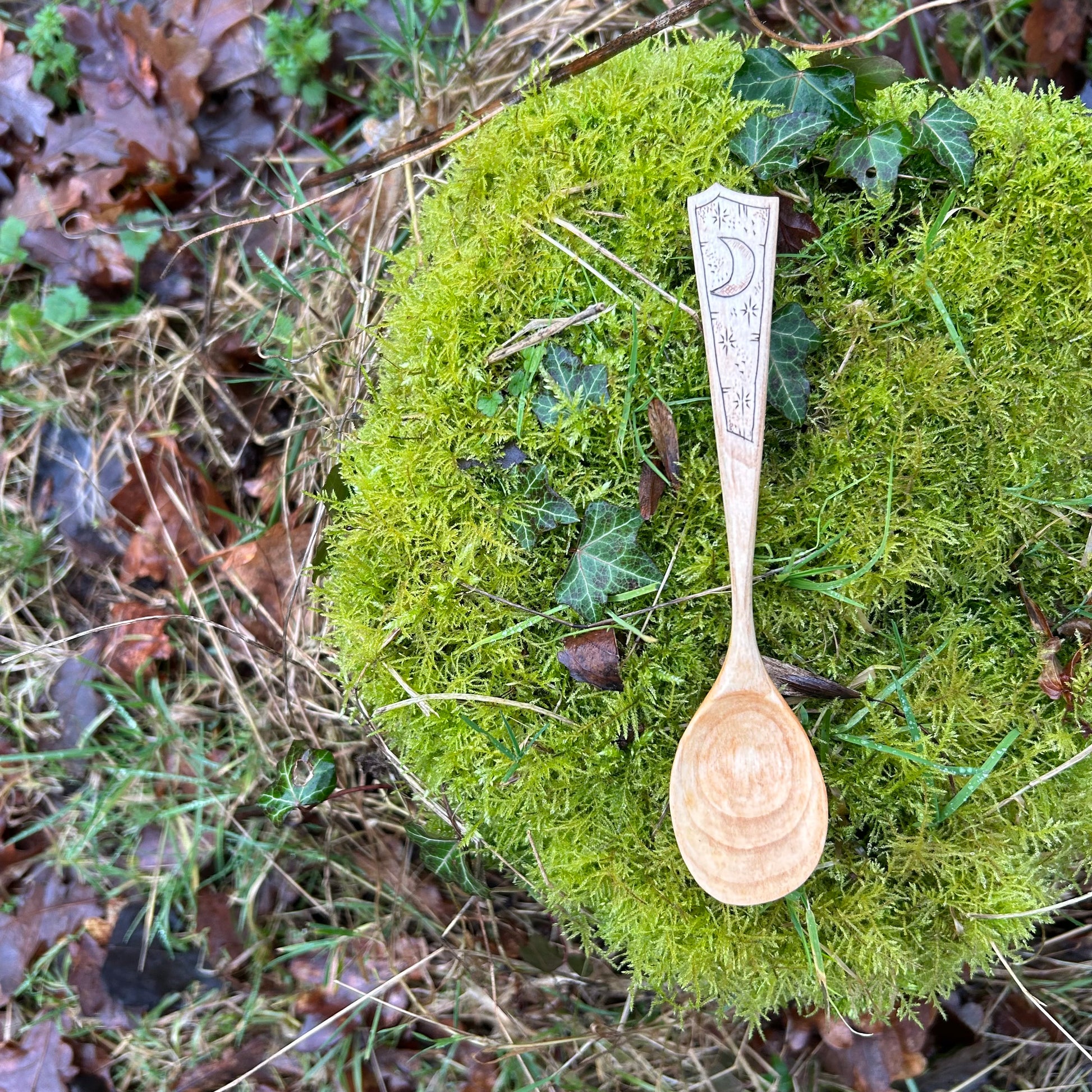 Hand carved using traditional methods, this functional yet beautiful small eating spoon is the perfect addition to your earth kitchen. Carved with axe and knife, from locally sourced Cherry Wood, from Bath City UK.