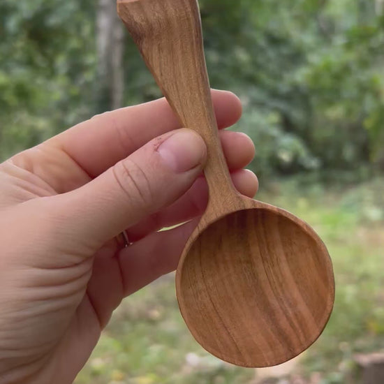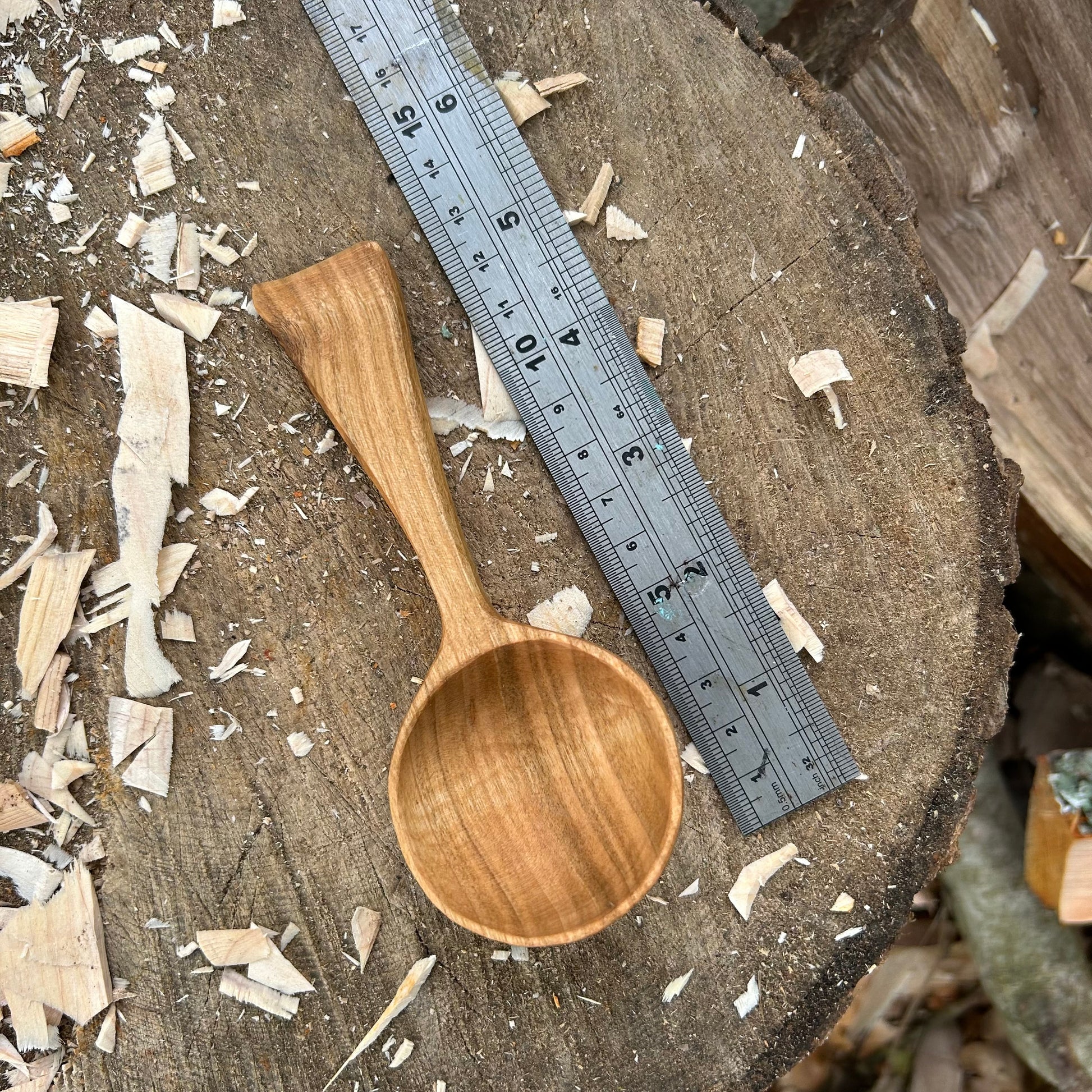 This is a hand carved wooden item and knife and tool marks may still be present. Please do not put wooden items in the dishwasher. Hand wash only with warm soapy water and leave to air dry. You may wish to oil your spoon every once in a while if it starts looking thirsty. A coat of food safe oil (tung oil, nut oils etc) will nourish the wood and keep it looking fresh.