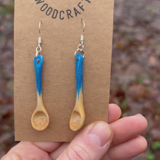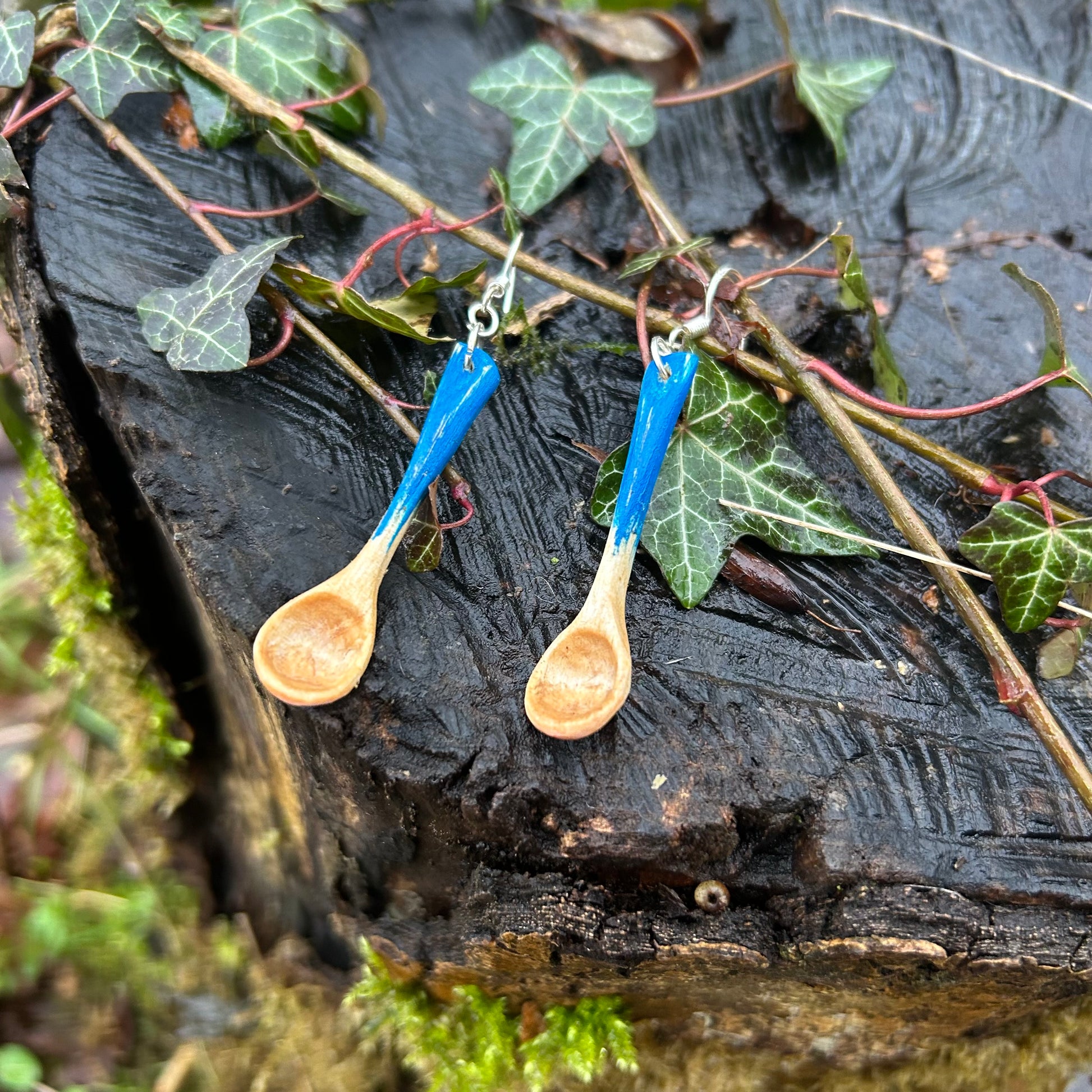 Tiny Spoon Earrings - Kingfisher Blue ~ Hazel Wood