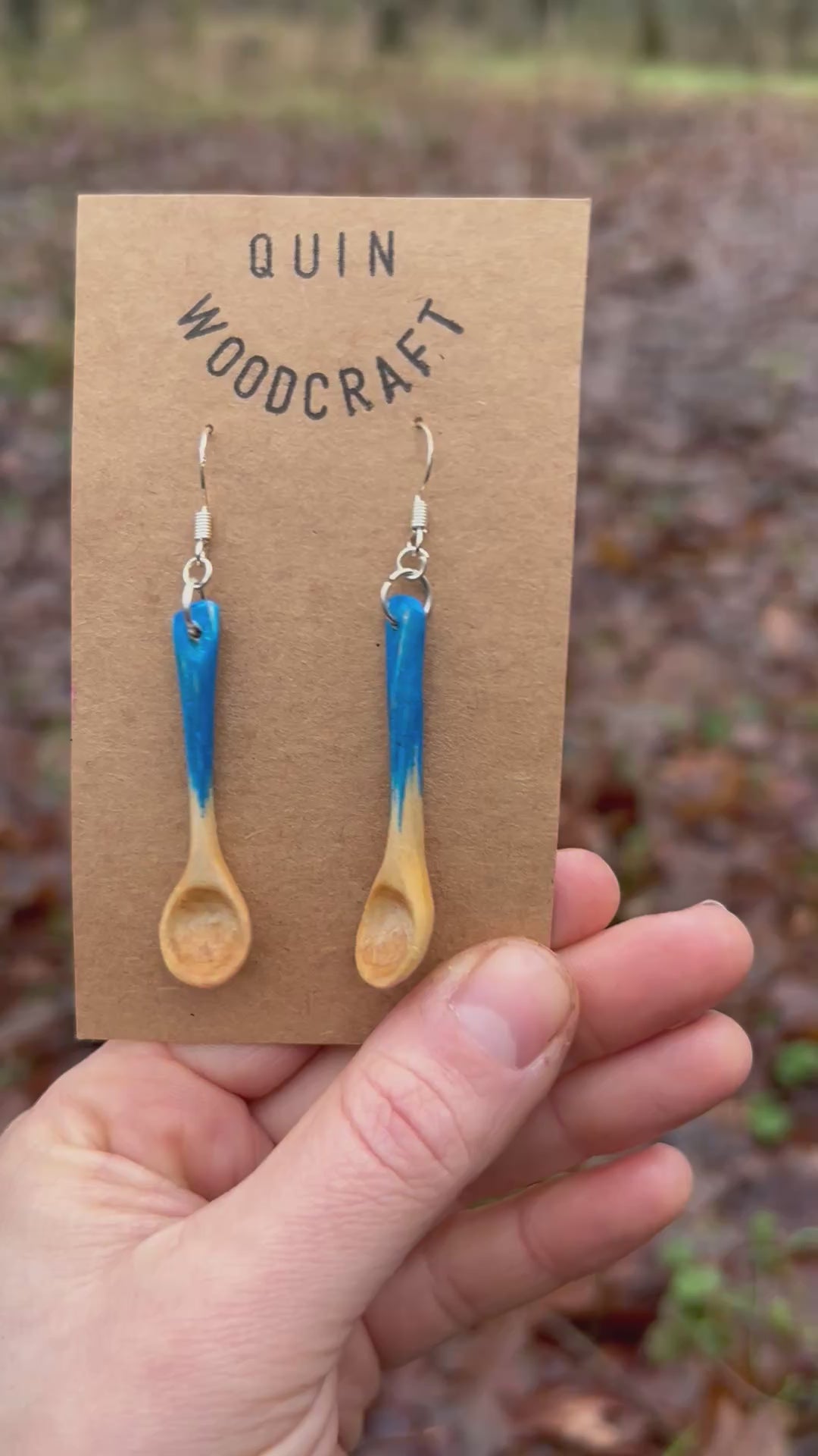 Hand carved from Wiltshire Hazel. Mini spoon earrings, the perfect gift for that quirky friend or spoon fan!